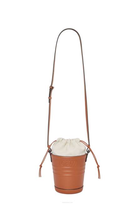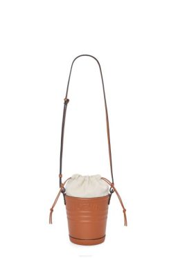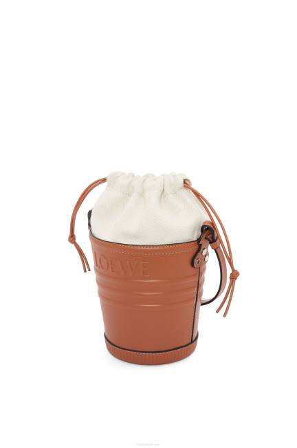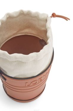 uma bucket bag confeccionada em couro de bezerro e com base no formato de um balde de jardineiro com assinatura loewe em relevo e cordão na parte superior em lona de algodão espinha de peixe.