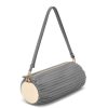 uma bolsa estruturada com uma alça de ombro simples e fecho de aba e um anagrama degrade na frente.