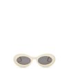 óculos de sol tipo argola em acetato com assinatura loewe no braço.