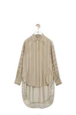 camisa assimétrica em seda loewe jacquard às riscas com punhos franceses e gola L bordada.