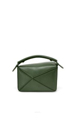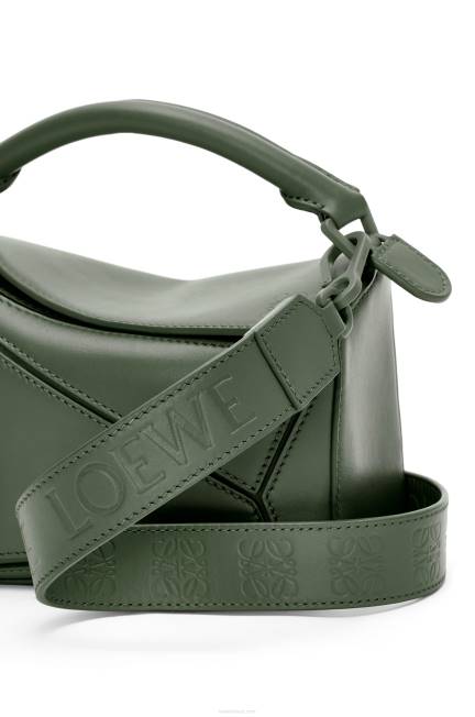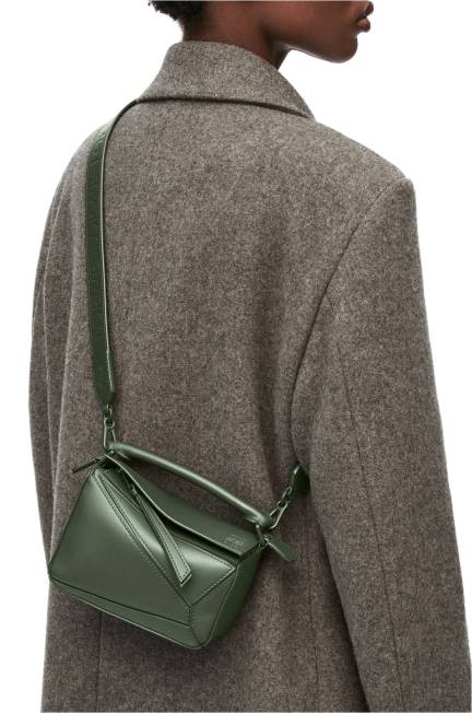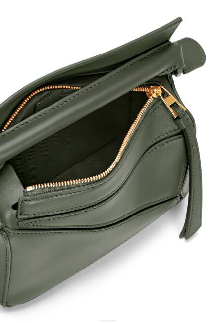 cáqui vintage 80ZJ270 mulheres bolsa mini quebra-cabeça em couro de bezerro acetinado Loewe