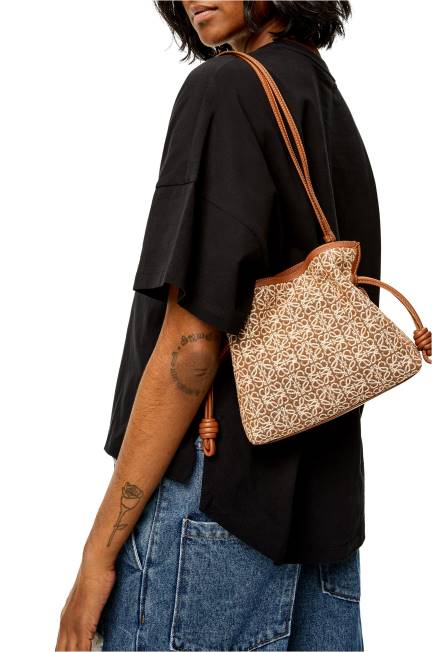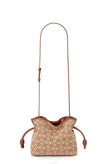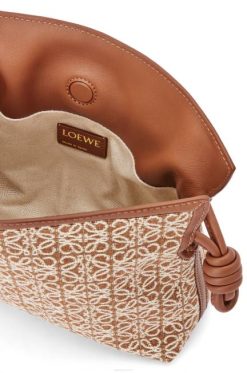 castanho/pecã 80ZJ310 mulheres mini clutch flamenca em jacquard anagrama e couro de bezerro Loewe