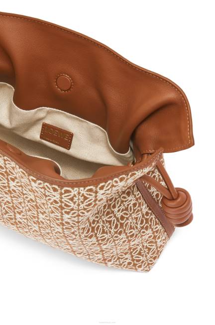 lançada na década de 1970, a clutch flamenca fecha com puxadores de cordão com acabamento em nós enrolados característicos. esta versão é feita em couro de bezerro e jacquard anagrama.