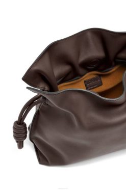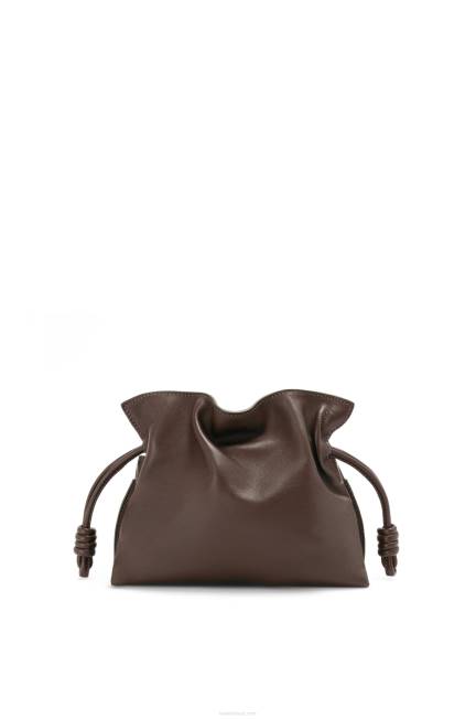 chocolate 80ZJ555 mulheres mini clutch flamenca em couro de bezerro nappa Loewe