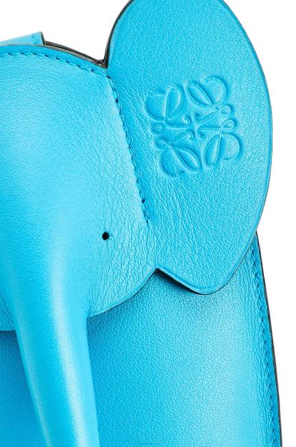 bolsa confeccionada em couro de bezerro em forma de elefante.