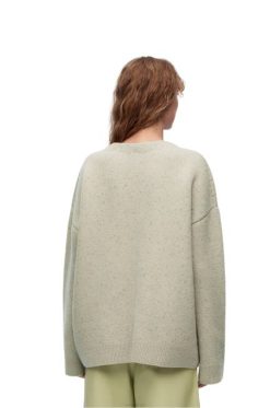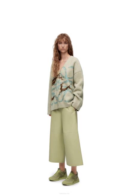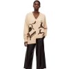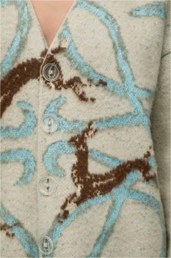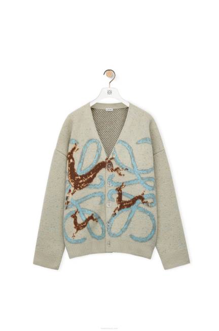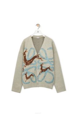Cardigan com decote em V em lã escovada com punhos e bainha canelados, com anagrama macro e motivos de veados do arquivo do estúdio britânico potter bernard leach.