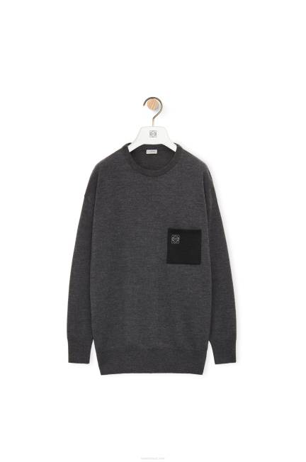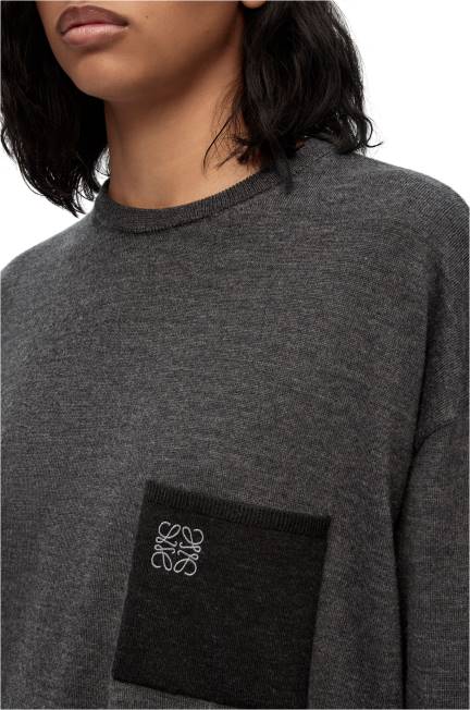 cinza escuro 80ZJ991 mulheres suéter de bolso anagrama em lã Loewe