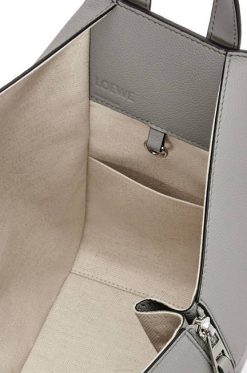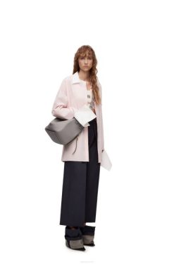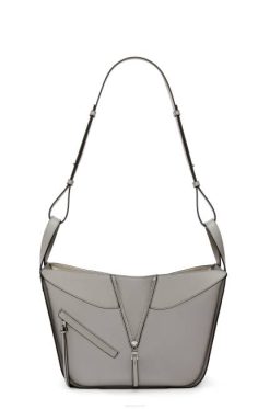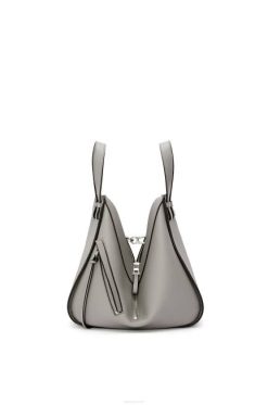cinza pérola 80ZJ434 mulheres bolsa de rede pequena em couro de bezerro granulado macio Loewe
