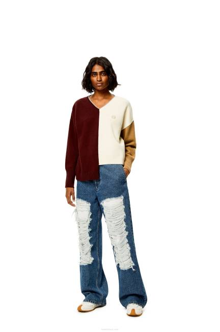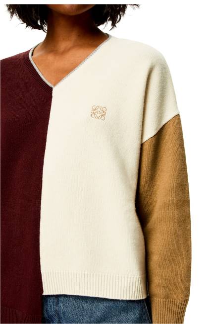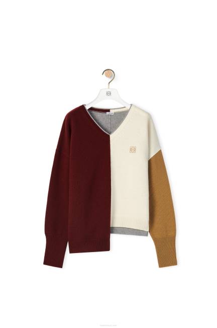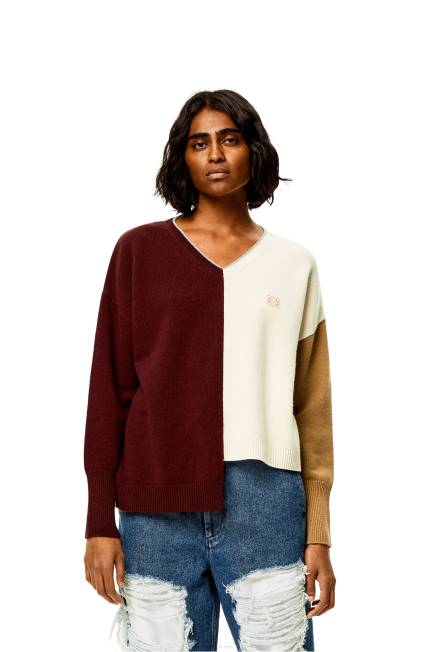 conhaque/borgonha/creme 80ZJ1010 mulheres suéter assimétrico anagrama em lã Loewe