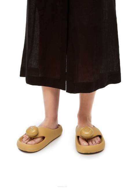 Sandália biqueira em espuma de borracha clara com detalhe em anagrama gravado e palmilha ergonômica.