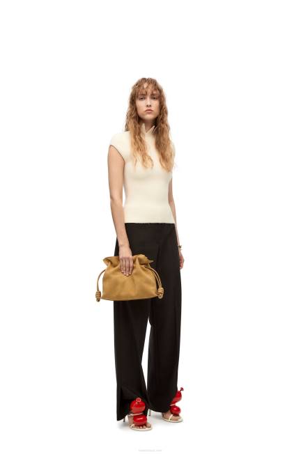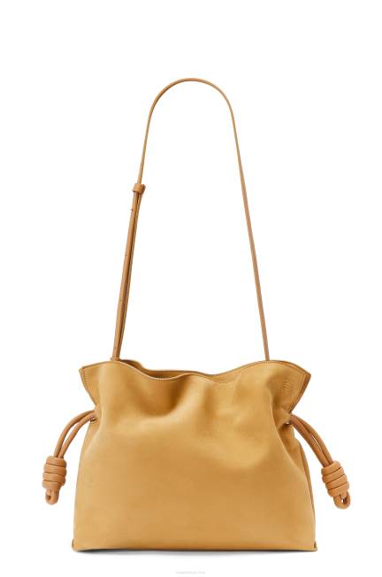 lançada na década de 1970, a clutch flamenca fecha com puxadores de cordão com acabamento em nós enrolados característicos. esta versão é confeccionada em nobuck.