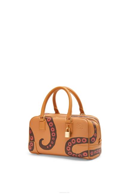 A amazona é um ícone da Loewe originalmente lançada na década de 1970 como uma bolsa maleável com alça superior. agora atualizado com proporções refinadas e detalhes primorosamente trabalhados, incluindo um cadeado gravado em anagrama. esta versão em couro de bezerro napa com polvo trabalhada utiliza a técnica de marchetaria do couro e é inspirada no trabalho do estúdio britânico potter bernard leach.