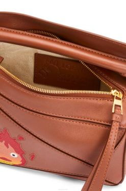 ferrugem 80ZJ260 mulheres bolsa mini quebra-cabeça calcifer em couro de bezerro acetinado Loewe