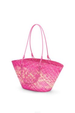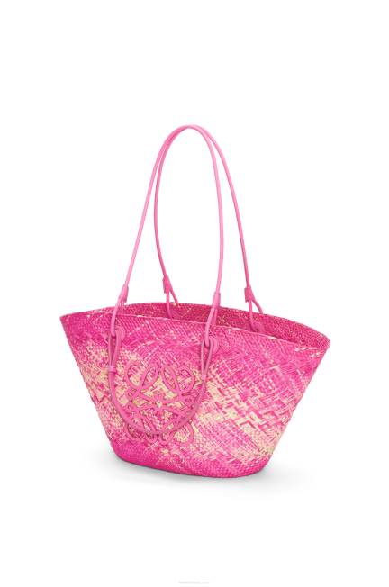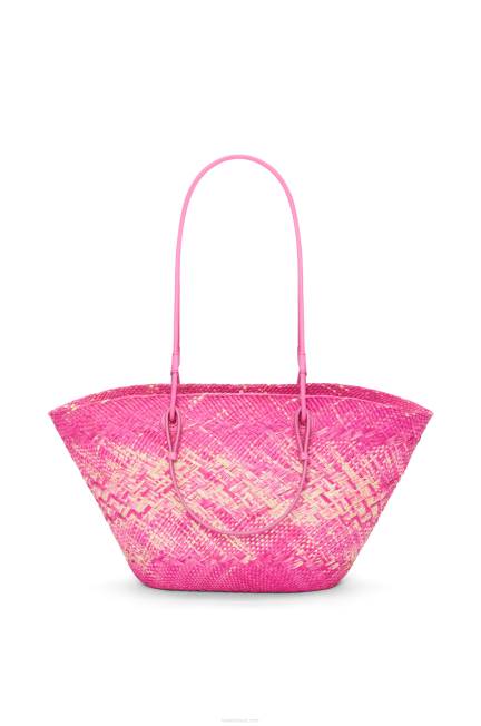 uma cesta tradicional com corpo clássico tecido à mão, alças tubulares de couro de bezerro e anagrama de couro de bezerro bordado. esta versão melange é trabalhada em palmeira iraca que é cultivada, colhida e seca ao sol na colômbia, onde é então tecida por mulheres artesãs da corporação oficio y arte, uma organização guiada por princípios de comércio justo.