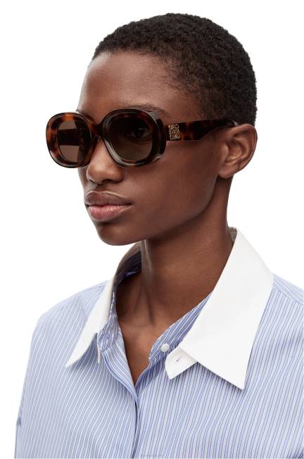 óculos de sol ovais em acetato com anagrama em acabamento dourado na haste.