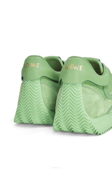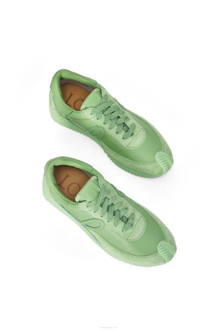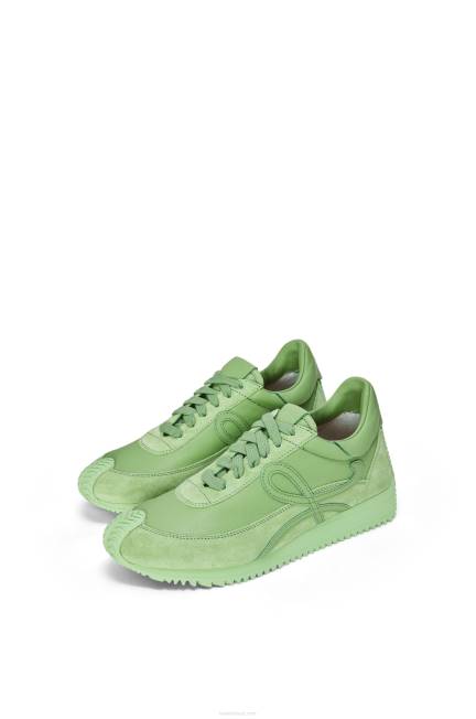 Tênis de cadarço em couro de bezerro com cabedal macio com monograma em L e solado de borracha cor de mel que se curva ao redor do dedo do pé e na parte de trás do calcanhar.