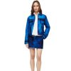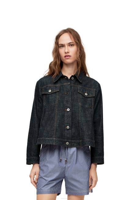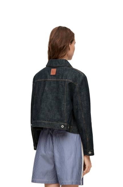 jaqueta trapézio confeccionada em jeans leve e lavado.