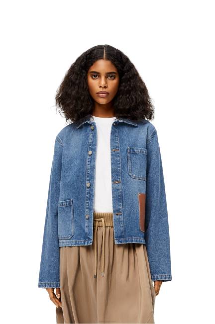 jeans azul 80ZJ1201 mulheres jaqueta curta anagrama em algodão Loewe