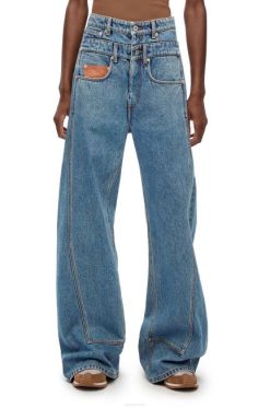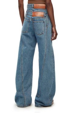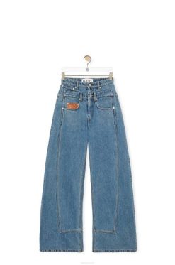 calça jeans de cintura alta confeccionada em jeans de algodão lavado de peso médio.