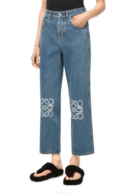 jeans cropped anagrama confeccionado em jeans de algodão lavado de gramatura média.