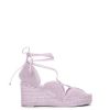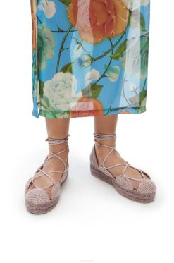 Alpargatas com cadarço feitas à mão em juta com elementos semicirculares trançados no cabedal. com cadarços em pele de carneiro tubular.