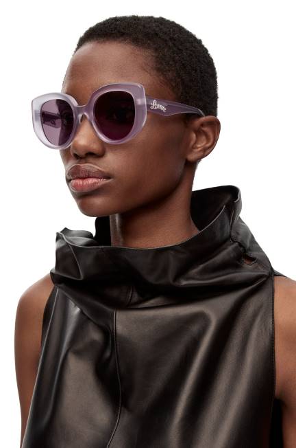 óculos de sol borboleta em acetato com lentes tonais e assinatura loewe no braço.