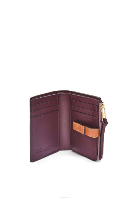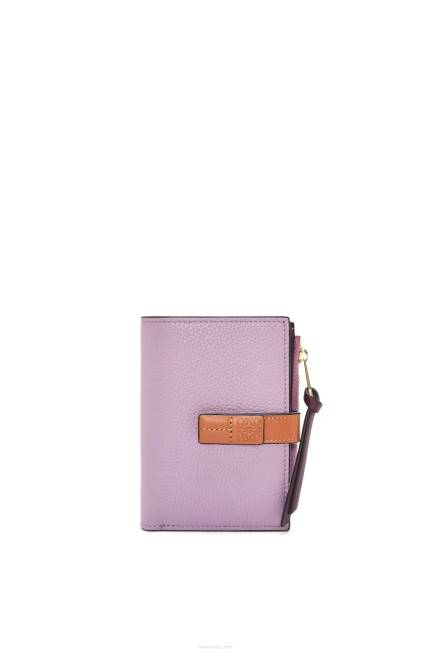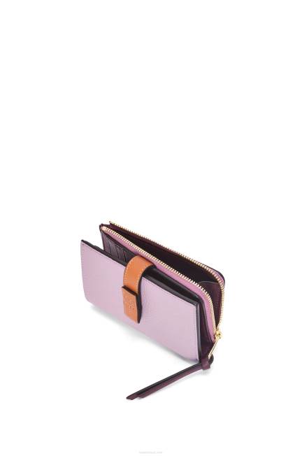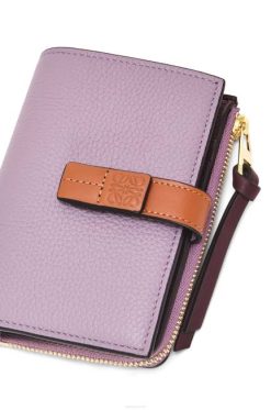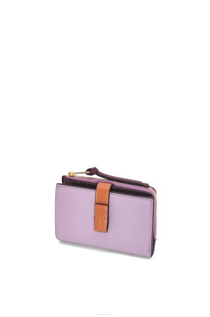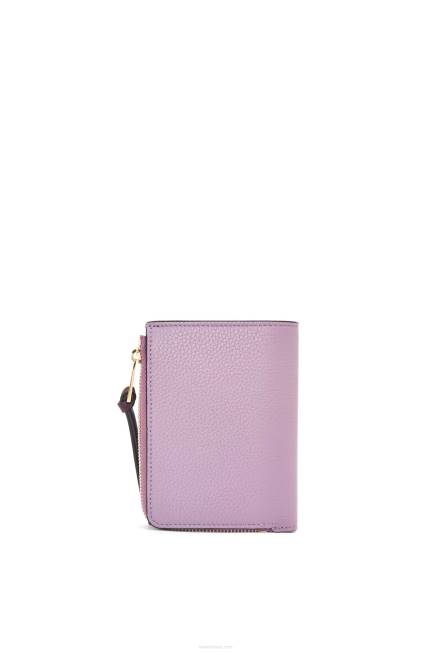 lilás/castanho sujo 80ZJ1269 mulheres carteira fina dobrável com zíper em couro de bezerro granulado macio Loewe