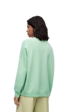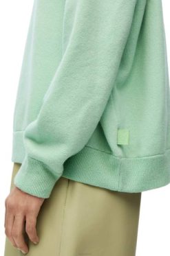 matcha verde 80ZJ1001 mulheres suéter gola redonda oversize em caxemira Loewe