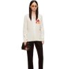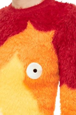 Suéter fofo de gola redonda com padrão de chama intarsia e olhos de calcífero bordados à mão no peito. este suéter faz parte da coleção cápsula do castelo em movimento da loewe x howl.