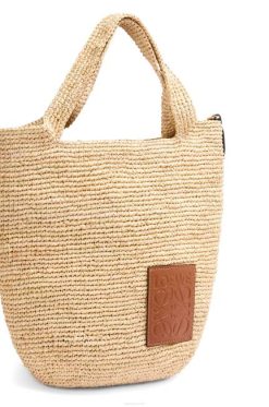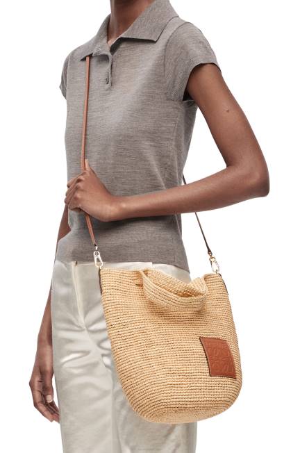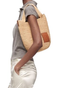 natural/bronzeado 80ZJ10 mulheres bolsa mini fenda em ráfia e couro de bezerro Loewe