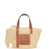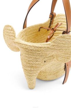 uma bolsa híbrida confeccionada em couro de bezerro e ráfia que combina a silhueta distinta da bolsa loewe com uma cabeça de elefante. esta versão é em tamanho pequeno.