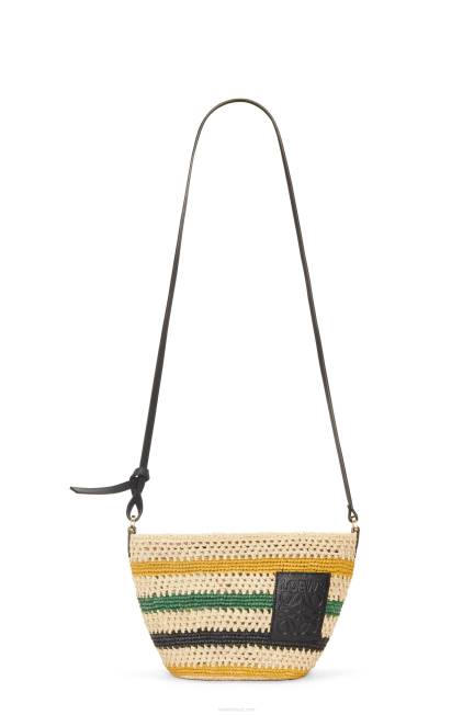 natural/preto 80ZJ28 mulheres pequena cesta embutida em folha de palmeira e couro de bezerro Loewe