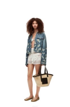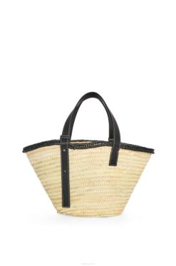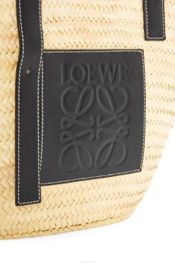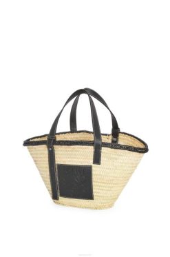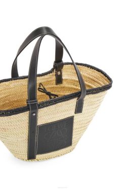 natural/preto 80ZJ27 mulheres bolsa cesta embutida em folha de palmeira e couro de bezerro Loewe