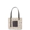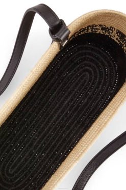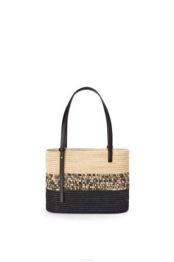uma cesta tradicional elevada com um corpo de ráfia degradado, alças de couro de bezerro e um patch de couro de bezerro em anagrama Loewe em relevo.