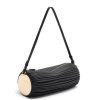 uma bolsa tubular versátil em pele de cordeiro napa plissada que se transforma em pulseira. acabamento com placas de metal em cada extremidade.