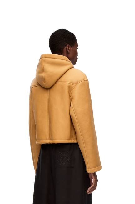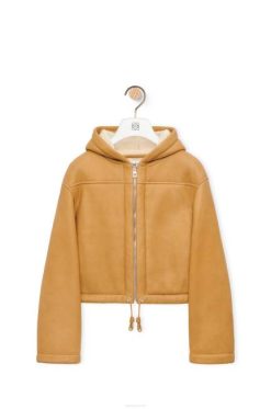esbranquiçado/marrom 80ZJ1126 mulheres jaqueta com capuz em shearling Loewe