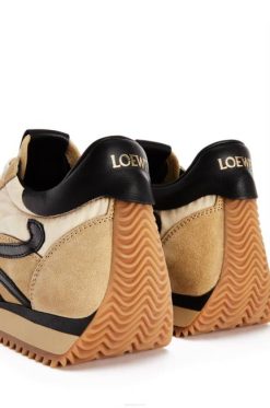 Tênis de cadarço com cabedal macio com monograma l e solado de borracha cor de mel que se curva ao redor do dedo do pé e na parte de trás do calcanhar. a coleção de sapatos ss23 joga com a tensão e o contraste: o artesanato se choca com uma atitude fetichista e os materiais naturais se chocam com o técnico. os principais detalhes incluem saltos divertidos, logotipos gráficos e biqueiras e tiras assimétricas