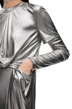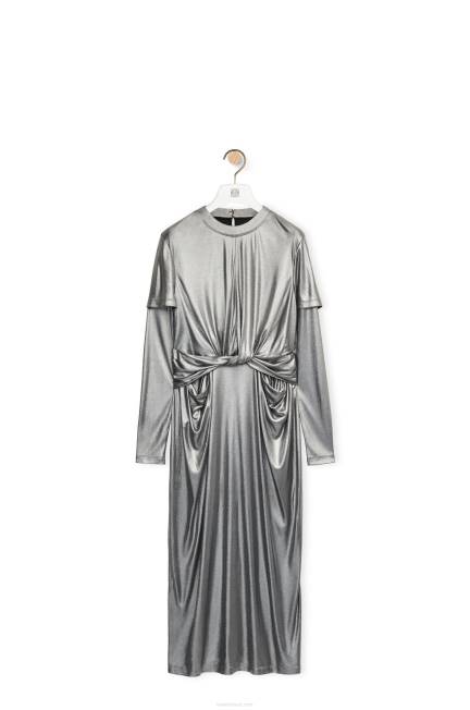 prata negra 80ZJ1092 mulheres vestido drapeado em jersey laminado Loewe