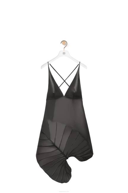 preto 80ZJ1038 mulheres vestido intarsia folha em napa Loewe