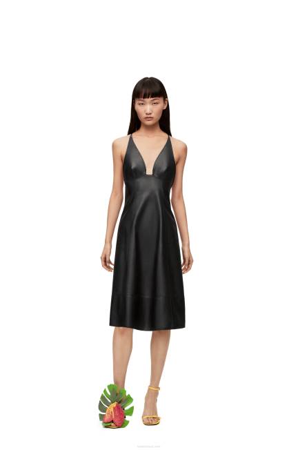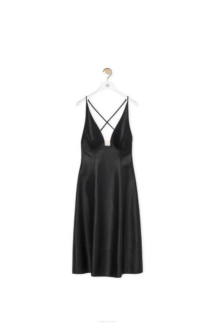 preto 80ZJ1071 mulheres vestido strappy anagrama em napa Loewe