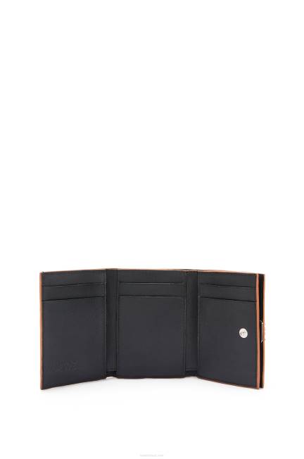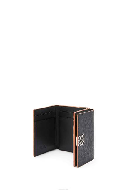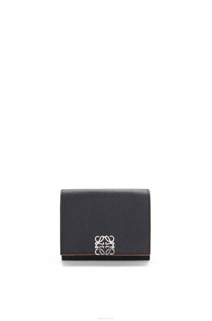 preto 80ZJ1245 mulheres Carteira com três dobras anagrama em couro de bezerro granulado Loewe
