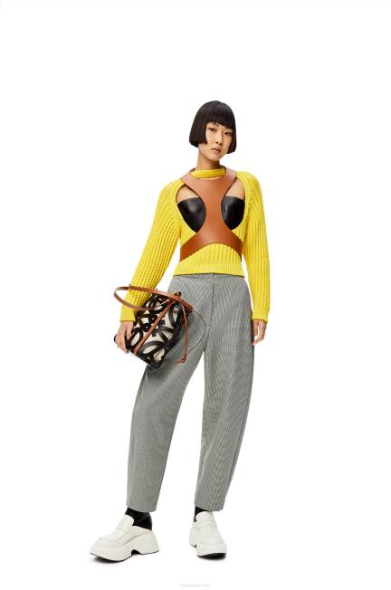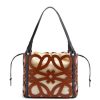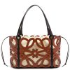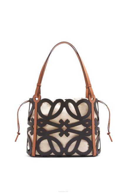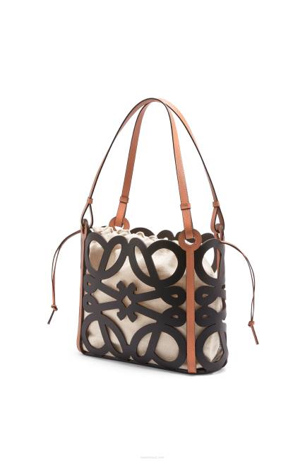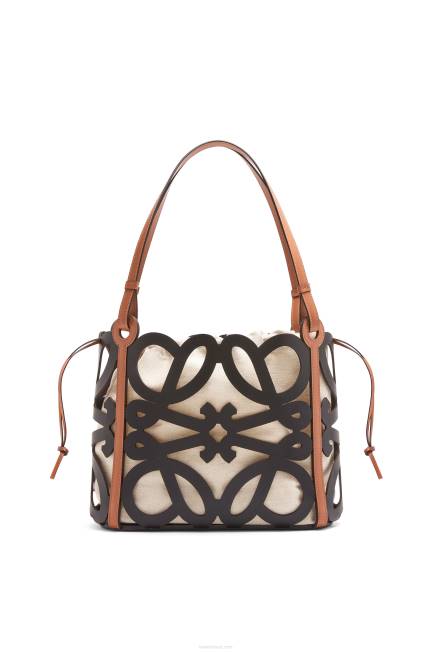 Tote bag versátil confeccionada em couro de bezerro recortado em padrão anagrama com alças em couro de bezerro e bolso interno com cordão em lona de algodão espinha de peixe. esta é uma versão pequena.