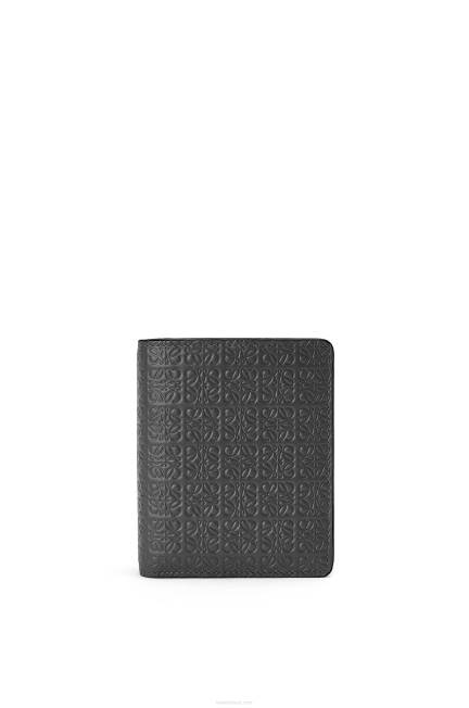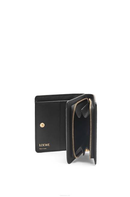 preto 80ZJ1275 mulheres carteira com zíper compacta repeat em couro de bezerro de seda com relevo Loewe