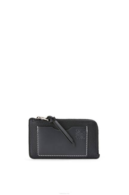 porta-moedas em couro de bezerro macio com bolso adicional para cartões na frente.