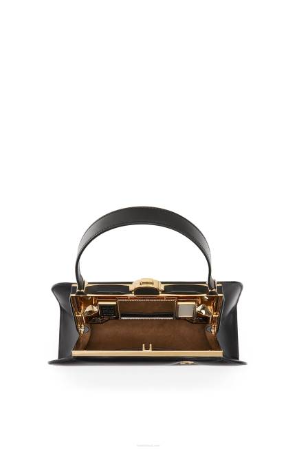 a bolsa lanterna é uma homenagem a uma bolsa chamada “straeter lite-on”, que acreditamos ter sido criada em 1953 por l.f.w straeter.loewe aborda a revitalização desse design como mais um exemplo do compromisso da casa em celebrar feitos históricos de artesanato em um contexto moderno. Principais características: feito de boxcalf. estrutura metálica interna com espelho compacto e compartimentos para itens essenciais. interior com uma pequena lanterna para iluminar o conteúdo e iluminar o exterior através de uma pequena janela. armação metálica com fecho push-top e interruptor para ligar e indicar a direção da lanterna.
