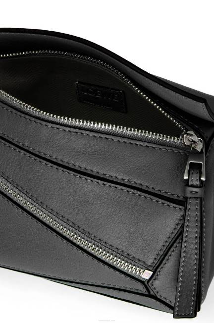 preto 80ZJ279 homens pochete mini quebra-cabeça em couro de bezerro clássico Loewe