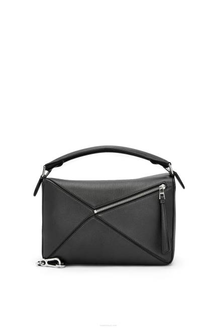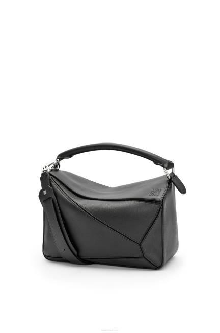 a bolsa quebra-cabeça é a bolsa de estreia da loewe do diretor criativo jonathan anderson. uma forma cubóide e uma técnica de corte precisa criam as linhas geométricas distintas do quebra-cabeça. esta versão é trabalhada em couro de bezerro clássico