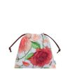 bolsa em lona com estampa de rosas. com um top de cordão e puxões de couro de bezerro.