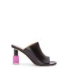 Sapato slingback em couro de bezerro com bico fino e salto objets trouves rosa com folhas e pétalas aplicados à mão.