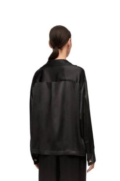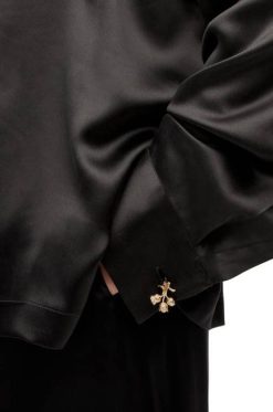 blusa pijama confeccionada em cetim de seda leve.